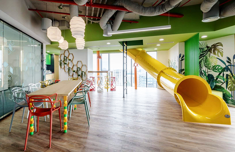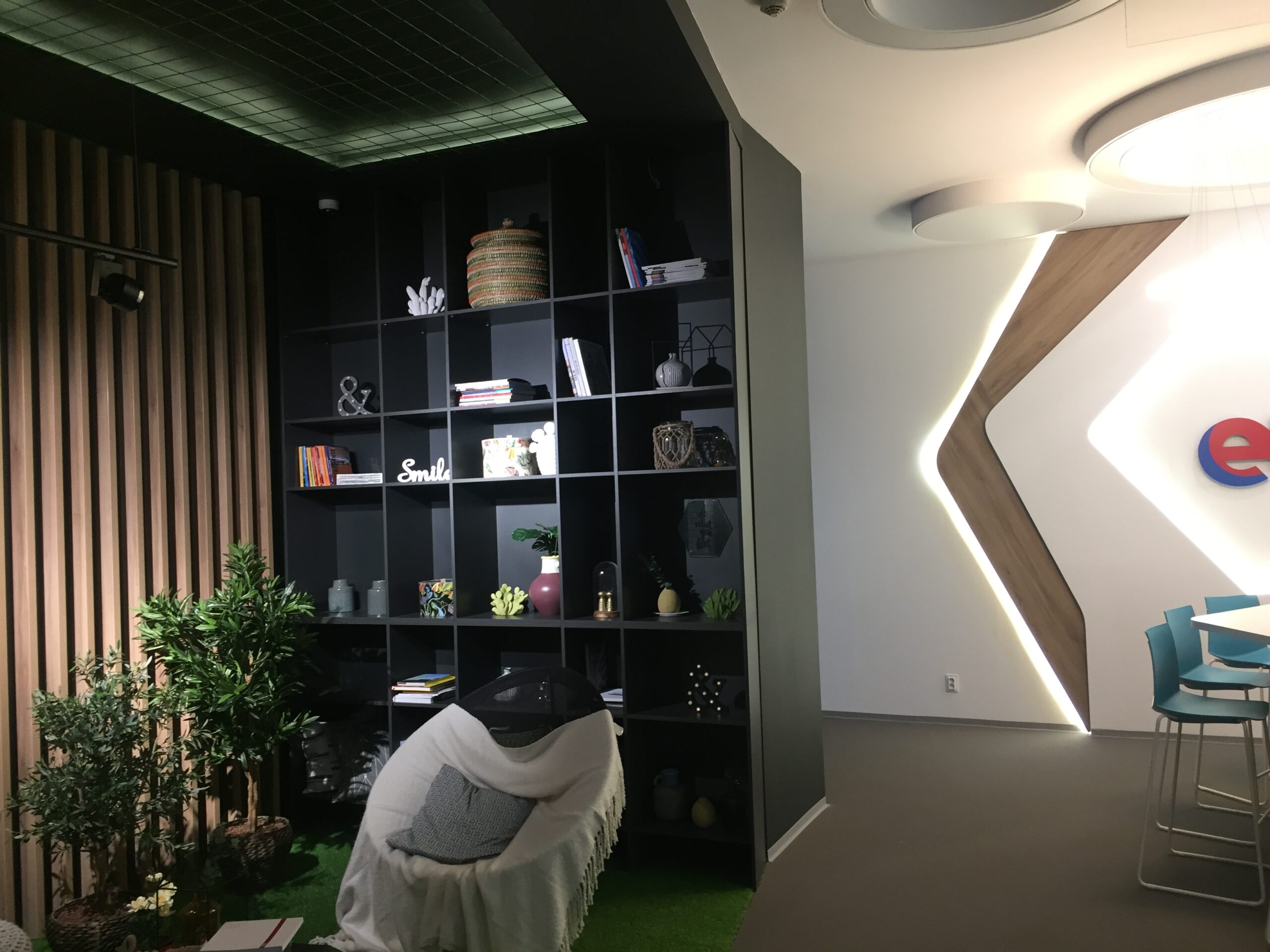 • Zonă de relaxare: Spații unde angajații se pot relaxa și socializa, precum lounge-uri confortabile sau chiar zone de jocuri.