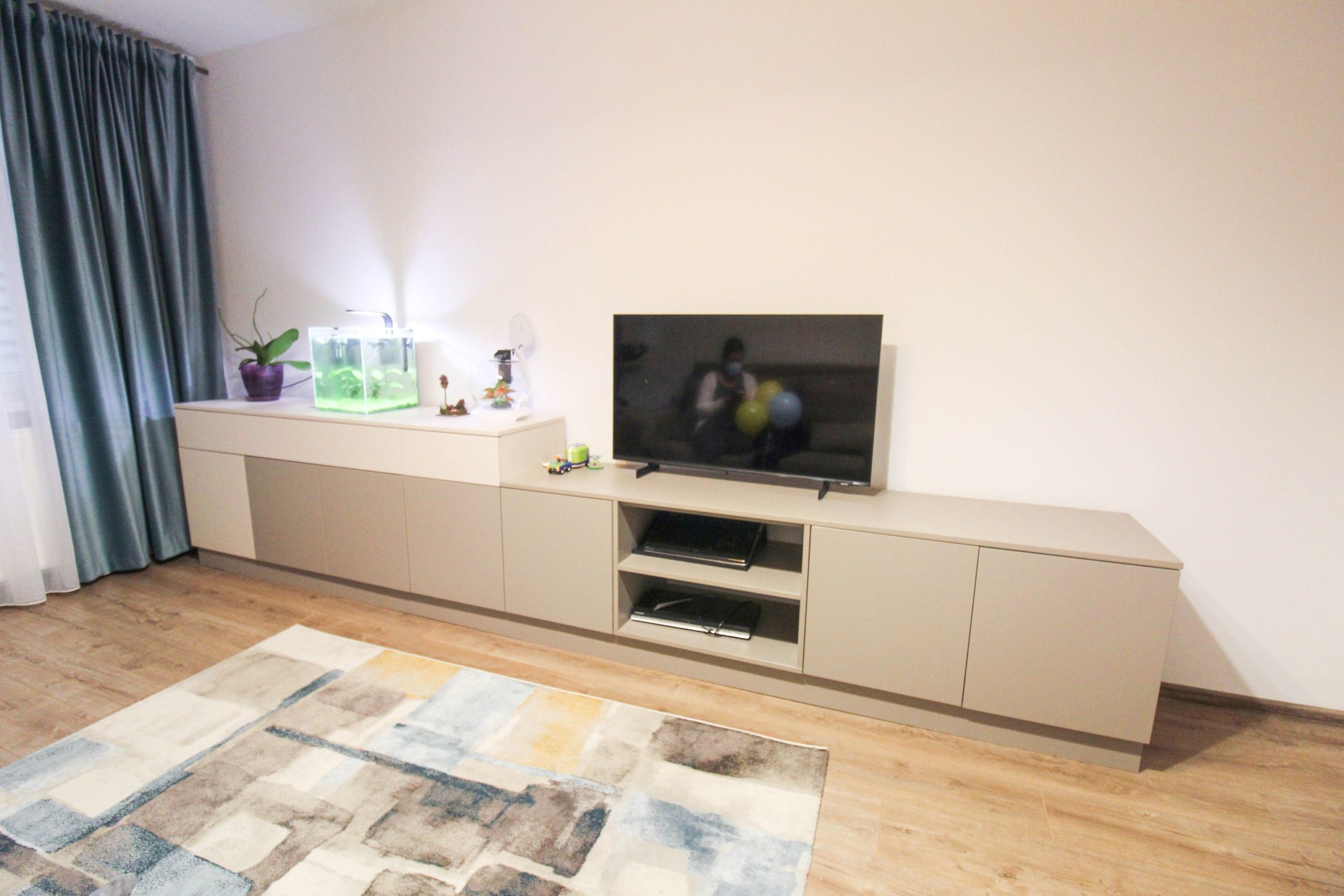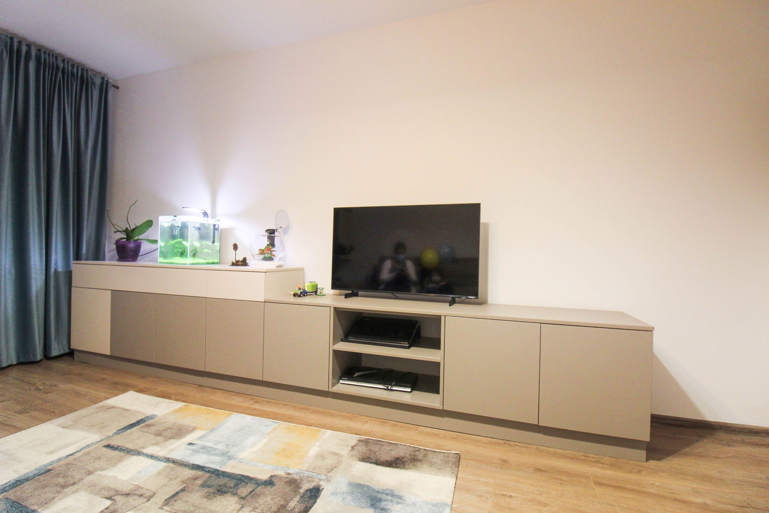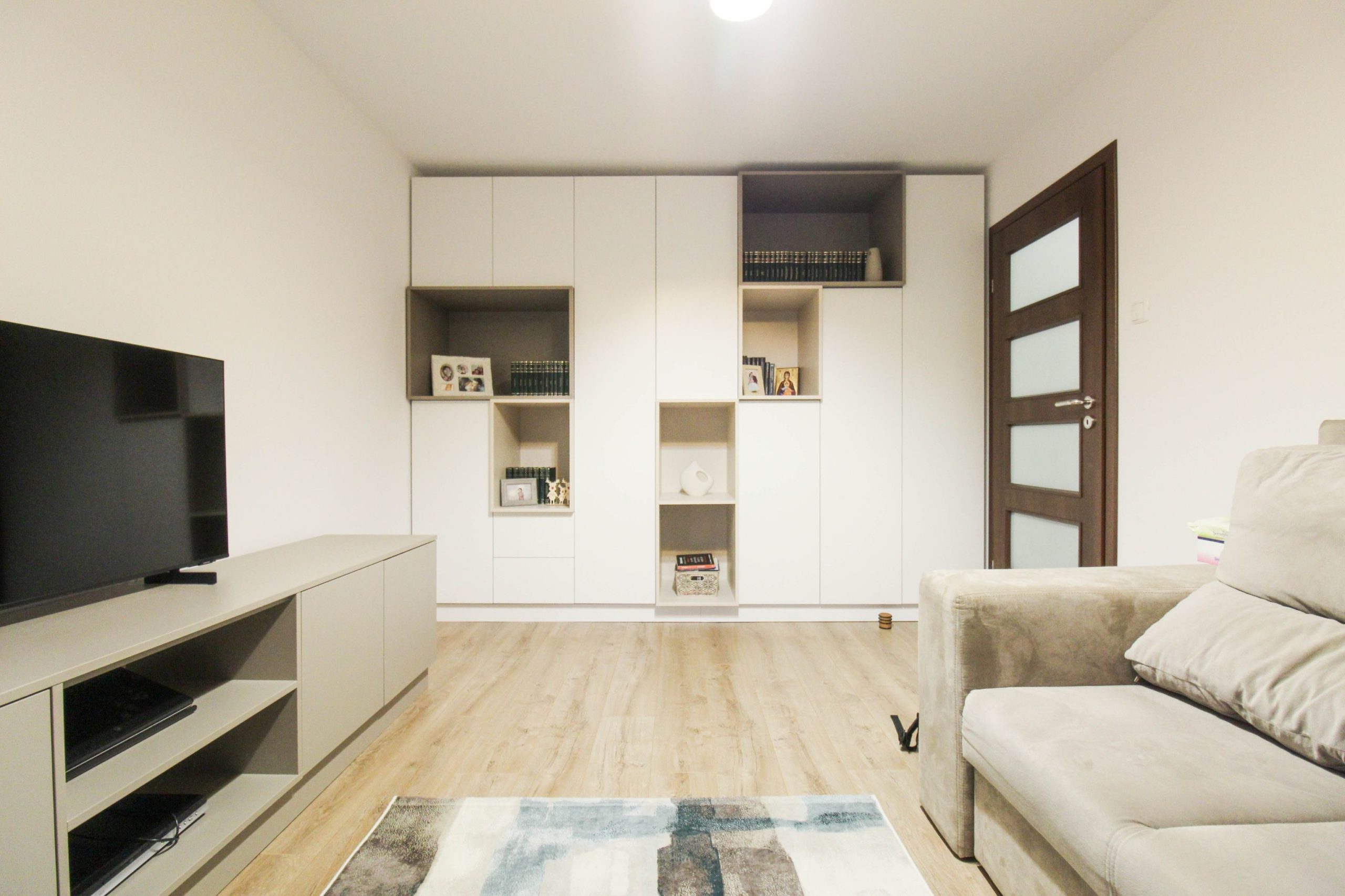 Acest proiect a prevazut reamenejarea spatiului destinat relaxarii, livingul fiind cea mai des utilizata incapare dintr-un apartament. Cu o suprafata de 18 mp, clientii isi doreau ca spatiul sa fie corect si functional folosit, sa cuprinda o zona de relaxare, o zona de depozitare, chiar si a hainelor, si o zona de biblioteca.